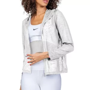 بلوز ورزشی زنانه نایکی مدل کلاه دار، تمام زیپ، جنس اسلپ، بدن نما و خنک کد 200132